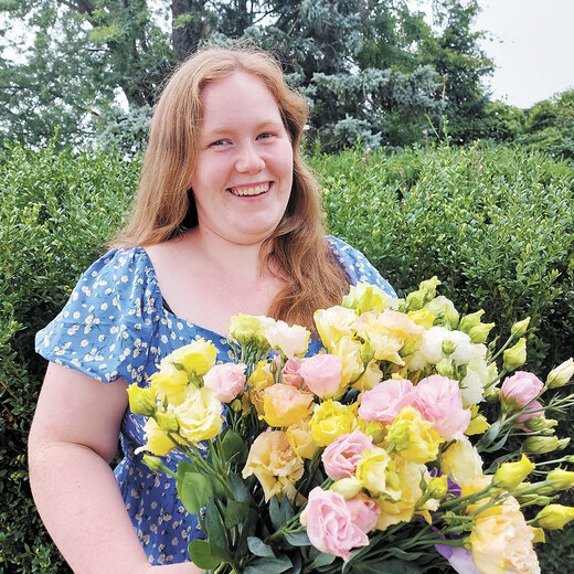 On Queenie Pentland's family farm near Nile, spring has been arriving in colour these days. Rows of tulips push through the soil. Dahlias follow later in the season, their blooms layered and bold.